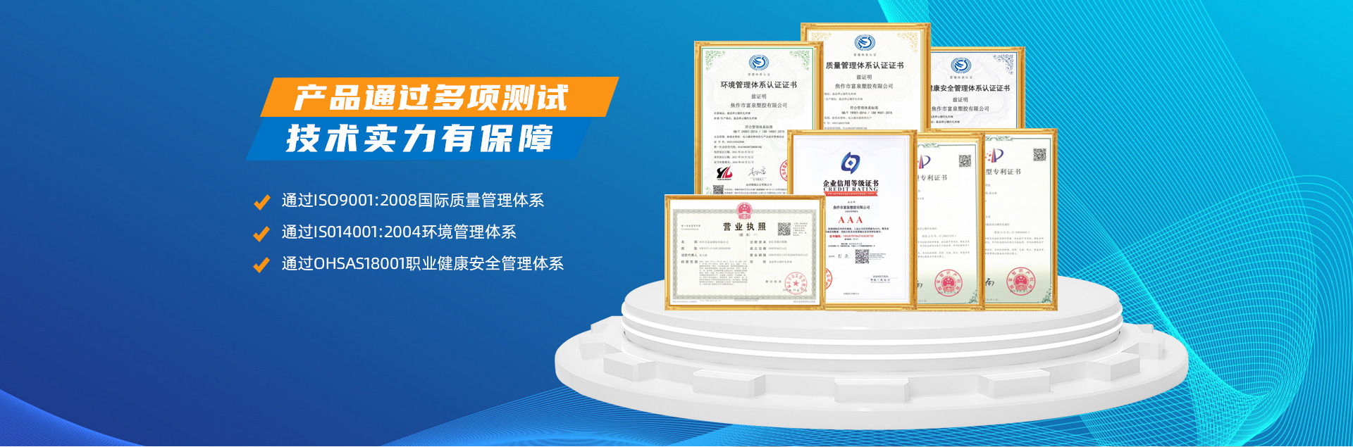 - 焦作市富泉塑膠有限公司,創(chuàng)立于1995年,是一家集研發(fā)、設計、生產、銷售為一體的大型管材企業(yè)。公司位于太極故里、黃河之濱一一河南焦作溫縣。公司占地128畝,現(xiàn)有職工210余人,其中具有中技術職稱的19人。生產、檢驗設備58臺(套),包括PVC實壁管生產線11套、PE實壁管生產線12套、HDPE雙壁波紋管生產線6套、PVC雙壁波紋管生產線5套,檢驗設備14臺(套)。主要產品有:Φ20mm-630mm、各種壓力規(guī)格的PVCU、PVC-M、PE給水管材,PVC-U節(jié)水灌溉管材,HDPE燃氣和礦用管材,DN200-800mm的HDPE、PVC雙壁波紋管及各種噴灌、滴灌工程材料。承接大中型市政供排水、飲水安全及節(jié)水灌溉等工程?! 「蝗苣z公司重視產品的質量、安全、環(huán)保和節(jié)能,在同行業(yè)中率先完成了“新華節(jié)水產品認證”,全方面通過ISO9001:2008國際質量管理體系、IS014001:2004環(huán)境管理體系和OHSAS18001職業(yè)健康安全管理體系的一體化導入,并建立起規(guī)范的現(xiàn)代企業(yè)管理體系。公司以“質量”為先導,采用質量跟蹤、多環(huán)節(jié)把關的方法,組建具有行業(yè)水準的企業(yè)技術檢測中心,常年委托水利部節(jié)水灌溉設備檢測中心、河南省產品質量監(jiān)督檢驗院對產品跟蹤檢測,并由中國人民保險公司承保產品質量。公司連續(xù)多年被河南省水利廳確定為“安全飲水設備、節(jié)水灌溉設備”定點生產企業(yè),并獲得“中國名優(yōu)產品”“質量、服務、信譽AAA企業(yè)”“河南省**產品”“河南省水利企業(yè)”“河南省守合同、重信用企業(yè)”等榮譽稱號?! 「蝗苣z公司堅持“用戶為上”的服務理念,長期以來,全方面關注客戶價值,不斷提升服務水平。服務隊伍常年為客戶的產品設計、施工、安裝提供合理的方案和全程細致、周到、**、快捷的技術服務。公司自成立以來,一直堅持以人為本的宗旨,塑造企業(yè)形象,并致力于新產品的開發(fā),憑借雄厚的技術開發(fā)能力,先進的工藝制造流程,嚴格的質量管理保證體系,優(yōu)良的售后服務網絡,已成為河南省大的飲水、灌溉及排水管材設備制造商。產品暢銷全國,而且還以公司雄厚的綜合實力在業(yè)界中占據(jù)著重要的地位。